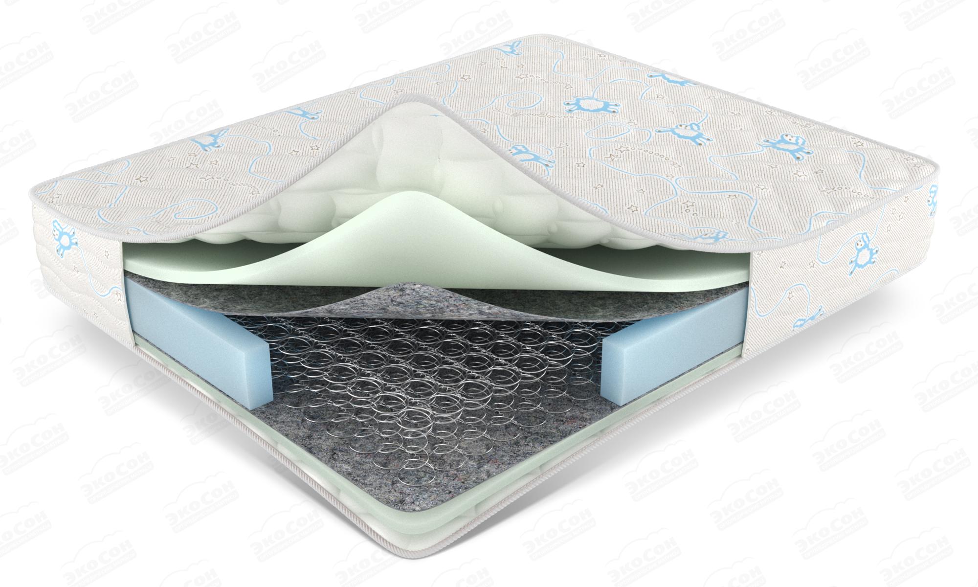 Umka — это детский матрас с зависимым пружинным блоком Боннель, рассчитанный на вес до 60 кг, высотой 13–14 см. Модель разработана специально для маленьких детей, обеспечивая мягкую и безопасную поверхность для сна и отдыха.