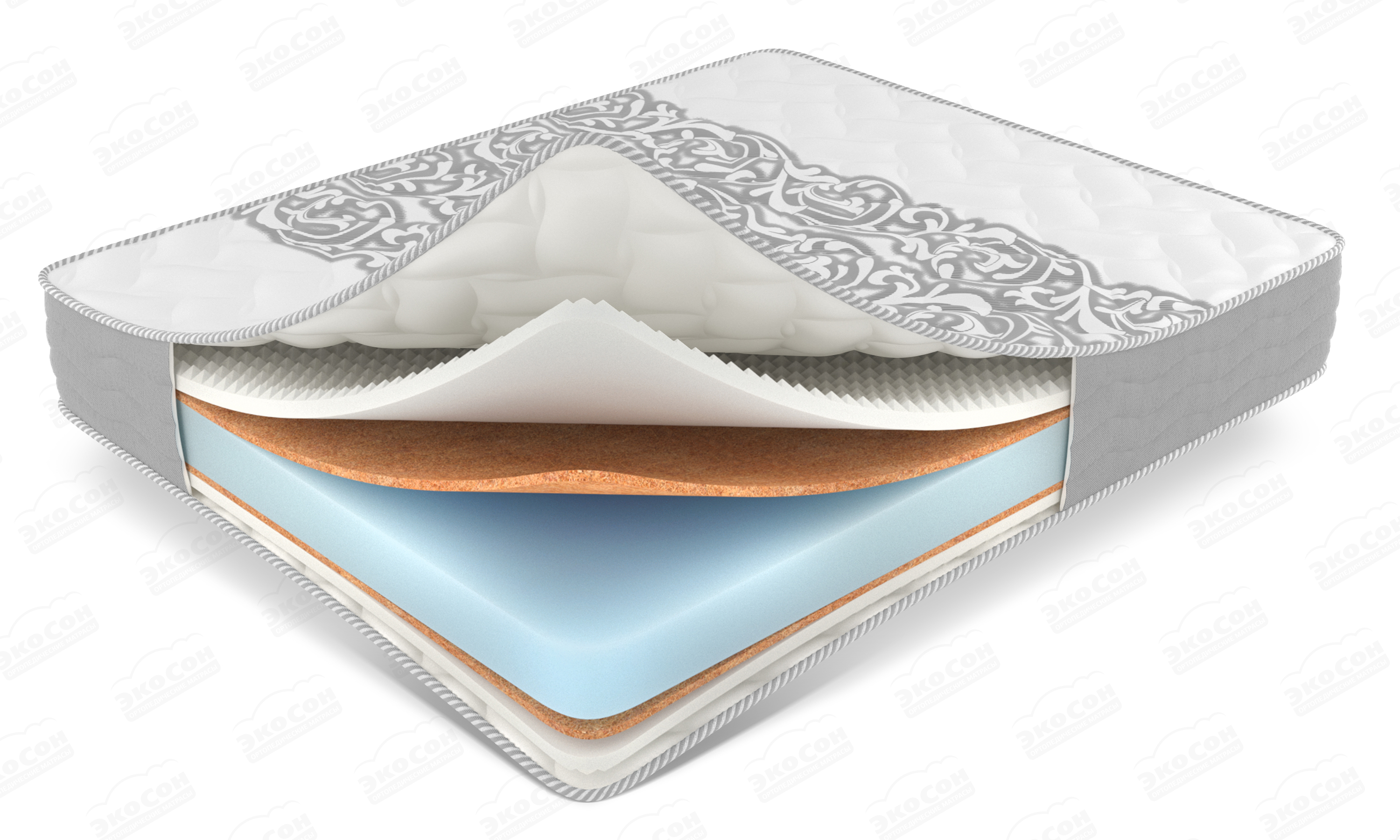 Слои кокосового волокна (по 10 мм с каждой стороны) придают матрасу упругость, ровность и усиливают ортопедический эффект, создавая оптимальную поддержку позвоночника.